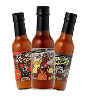 This is where the heat began. Our first three super-hot sauces—Ultimate Annihilation, Zombie Apocalypse, and Rapture—are brought together in one fiery 3-pack for true chili-heads. Each sauce features a unique blend of superhot peppers including Ghost, Habanero, Scorpion, and Reaper, balanced by a flavorful base of carrots, mandarin oranges, and tomatoes. Whether you're testing your limits or chasing bold flavor with serious heat, this bundle delivers a legendary burn with a surprisingly rich taste. Enjoy the ride.