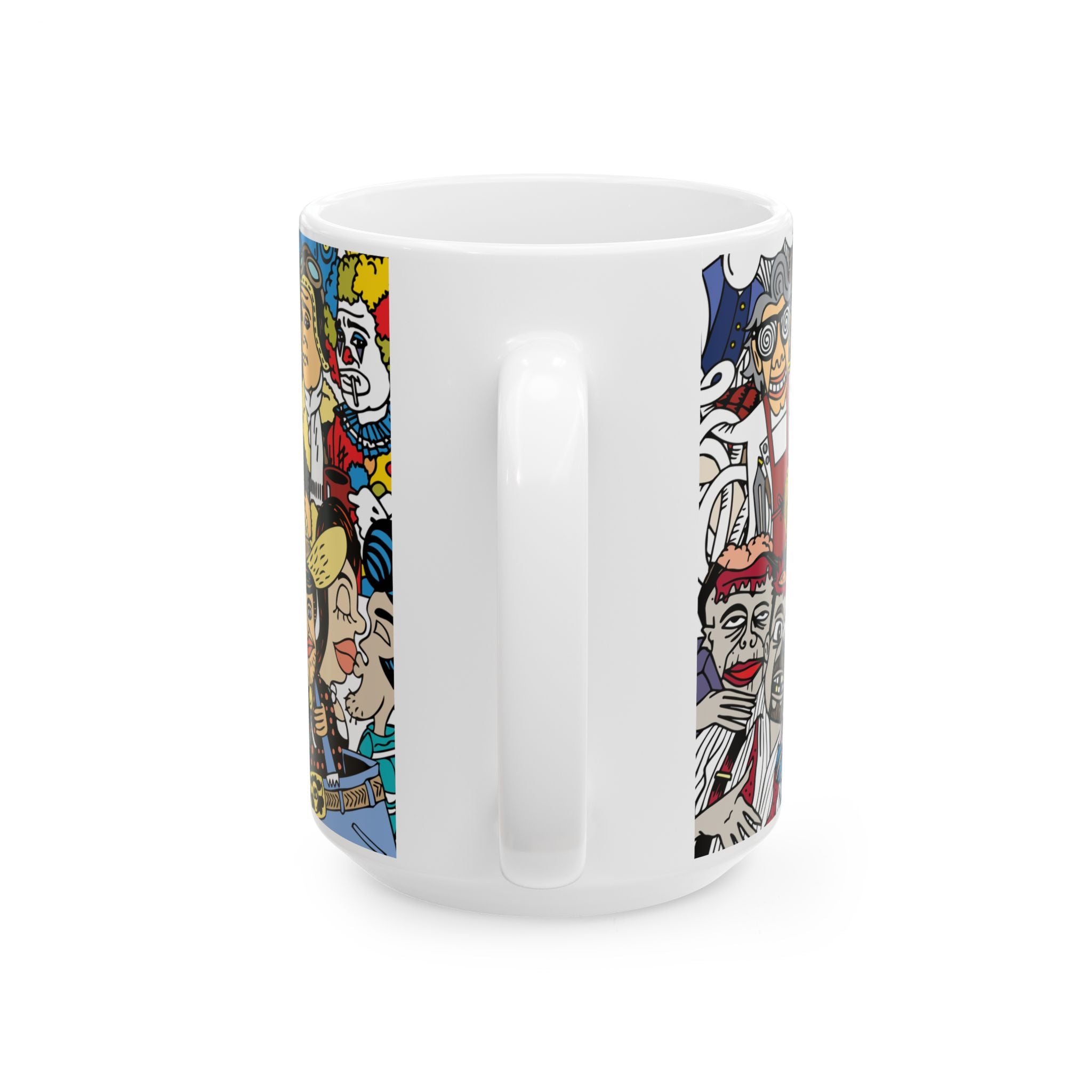 Let us help you start your day out right with this character-wrapped ceramic mug. Grab an 11 oz for a nice tea or coffee or get the 15 oz because last night was rough and you need to wake the heck up!