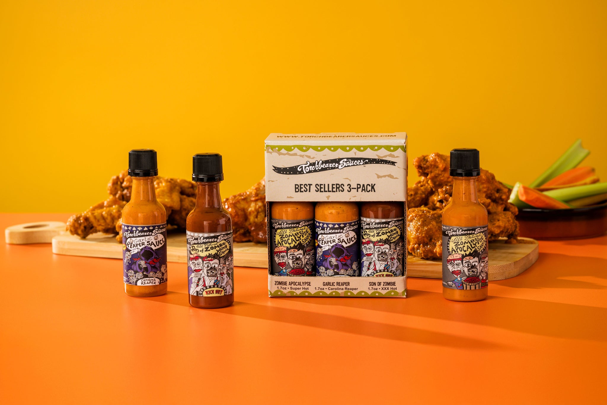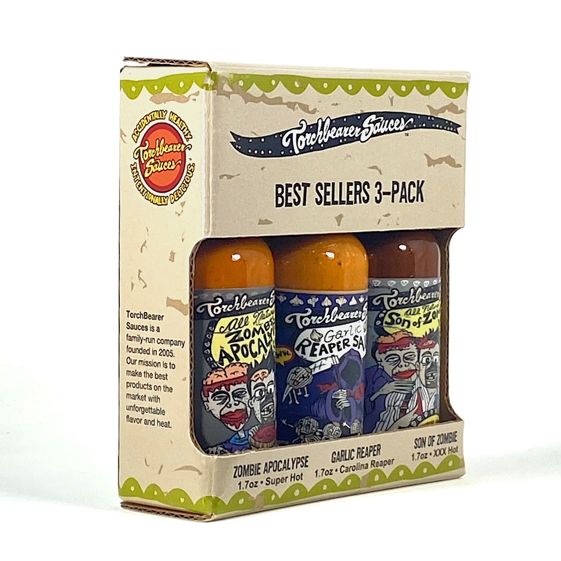 Big heat in small packages! This Best Sellers Mini 3-Pack brings together the first three TorchBearer sauces ever featured on Hot Ones—Son of Zombie, Zombie Apocalypse, and Garlic Reaper—in adorable 1.75 oz bottles. With heat levels ranging from 6 to 9.5, these travel-sized powerhouses are perfect for gifting, sampling, or sneaking into your bag for flavor emergencies. Whether you’re a longtime fan or a curious newcomer, this mini set brings the fire in all the right ways.